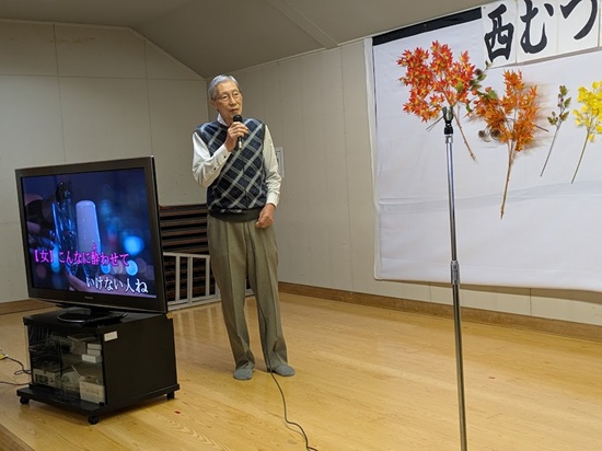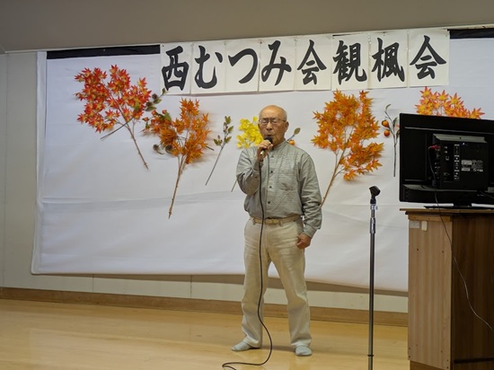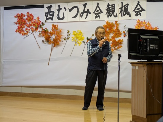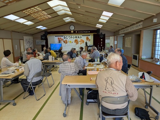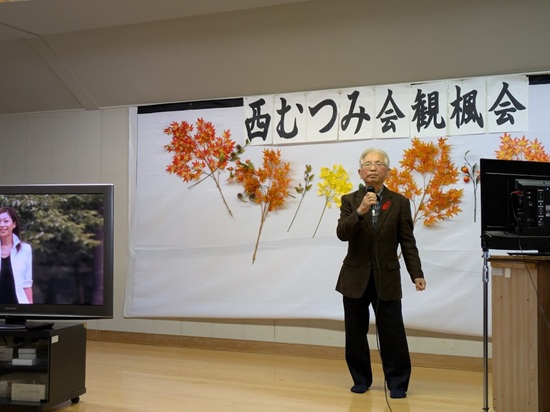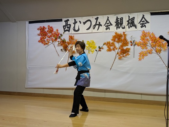 10月9日(木)、10時30分から西むつみ会が恵み野憩いの家で「観楓会」を催しました。 「観楓会」は年6回ある催事行事の一つで、月2回の例会の一つをこの催事に振り替えて行う行事です。 行事は、会費@1000円をいただき、飲み物・弁当・菓子・つまみが用意されます。 ビンゴゲームや踊り・カラオケで、皆さん2時ごろまで楽しんでおりました。