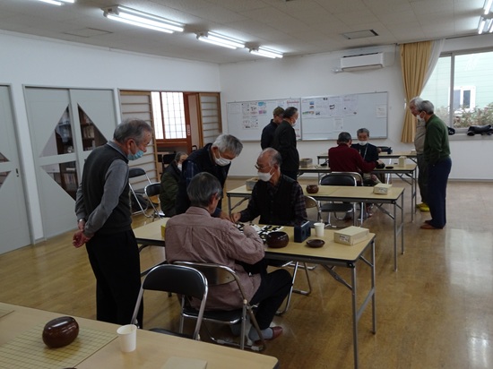 11月23日(日)9:30から町内会館で、町内「囲碁大会」を開催しました。 参加者は、いつもの顔ぶれの10名と少なく、昼食を挟んで一人4試合、14:30迄覇を競いました。 結果は下記の通りとなりました。 優 勝 藤井 弘敏(5段) 西1丁目 2 位 上野 善一郎(8段) 西1丁目 3 位 川島 正次(初段) 西1丁目 入賞を逃した方には、全員参加賞が当たりました。 年々参加者が少なくなっております、囲碁の心得のある方はどなたでも応募できますので、奮ってご参加をお願いします。