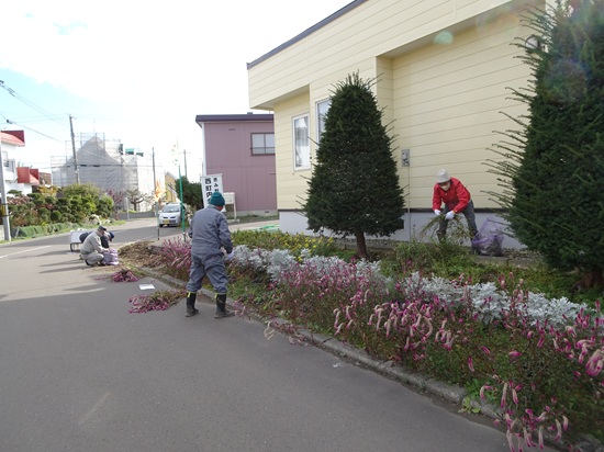 外部は春先に植えた花壇の花苗の除去と雑草取り、外側ガラス窓の清掃などを役員が担務しました。